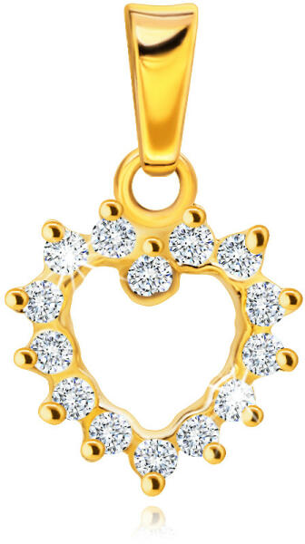 375 arany medál, szimetrikus szív kontúr alakban, amely az egész kerületén kerek, átlátszó cirkóniákkal díszített, csúcsos foglalatba ültetve. A láncra kerülő szem hosszúkás alakú és felfelé mérsékelten szélesedik, miközben a felülete fényes és sima. A medál méretei: 10 x 10 mmA medál súlya: 0,4 gA láncra kerülő szem szélessége: 2,5 mmFémjelzéssel ellátott