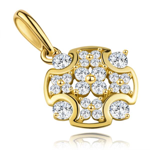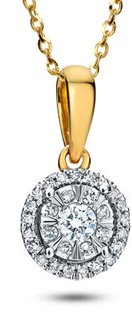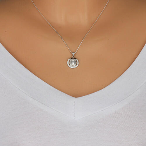 A ródiummal kezelt 925 ezüst medált egy átlátszó, búzaszem alakú cirkónia díszíti. A cirkóniát cirkóniás szegély veszi körül. A csillogó oválist egy átlátszó cirkóniákkal díszített kör körvonala szegélyezi. A medál tetején egy sima és fényes vonal található. A láncra kerülő szem sima, és felfelé szélesedik. A medál mérete: 15 x 15 mmA láncra kerülő sz