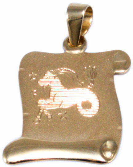 Bak horoszkópot ábrázoló pergamenes, mattítással díszített arany medál.