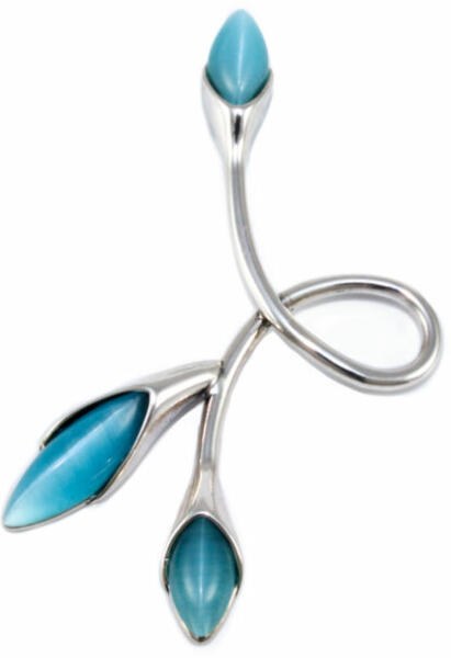 Modern stílusú, különleges, áttört, festett ulexit kővel ékített ezüst levél medál.