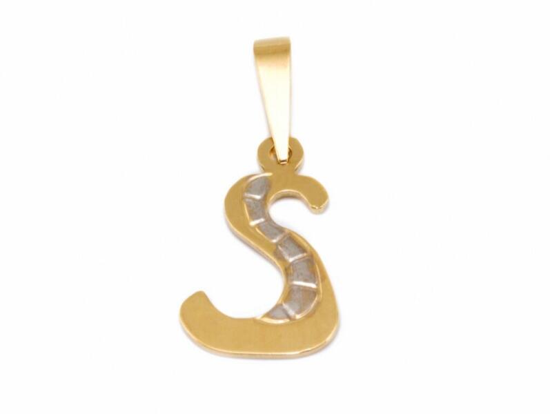 Kedves és személyre szóló ajándék lehet, ez a ródiummal és véséssel díszített, kétszínű arany "S" betű medál.