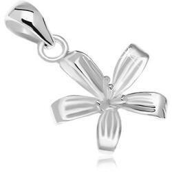Ezüst medál kivirított liliom virág alakban részletesen kidolgozott szirmokkal. A medál méretei: 13 x 12 mm A medál súlya: 0,6 g A láncra kerülő szem szélessége: 3 mmFémjelzéssel ellátott. Medál lánc nélkül.