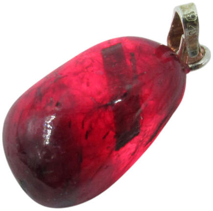 Természetes Rubin drágakő medál. A rubin medál áttetsző, zárványos. Az első fotón hátulról van megvilágítva a rubin. A fotó az ékszerről készült, színe monitoronként eltérő lehet. A rubin vélt gyógyhatása