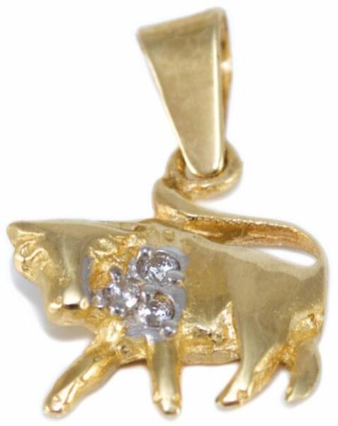 Modern stílusú kedvelt fazonú, cirkónia kövekkel díszített "Bika" arany medál.