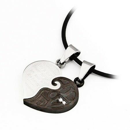 A kétrészes medál nemesacélból készült, szerelmeseknek szánt medál. Hasított fényes szív alakú, fényes béléssel ellátott. Míg a bal oldali rész ezüst színben készült egy romantikus felirattal. A jobb oldalt pedig szavak díszítik: ""I love"" és egy pár átlátszó cirkóniával díszített. Az összekapcsolt medál mérete: 24 x 26 mmA láncszem mérete: 4 mmAz ár két m