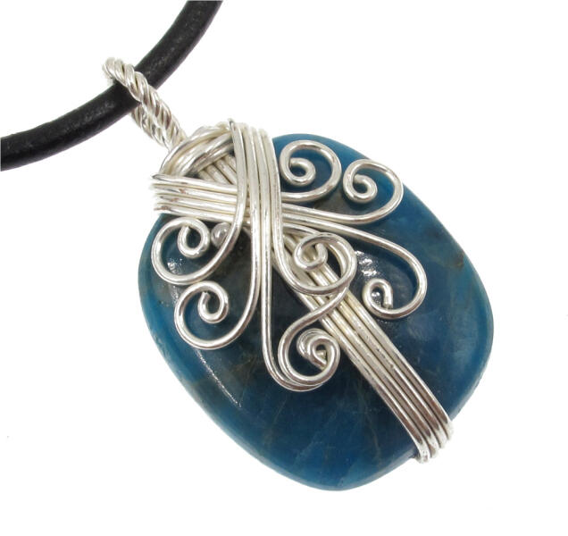 Egyedi apatit drótékszer medál. 25*28mm -es kaboson csiszolású apatit, ezüstözött huzalban. Hogy miben segít az apatit? Fejleszti a médiumi képességeket és a spirituális ráhangolódást elmélyíti a meditációt, felébreszti a kundaliní energiát segíti a kommunikációt és az önkifejezést. növeli az eltökéltséget, energiatartalékokat raktároz el Nyitottságra és az em