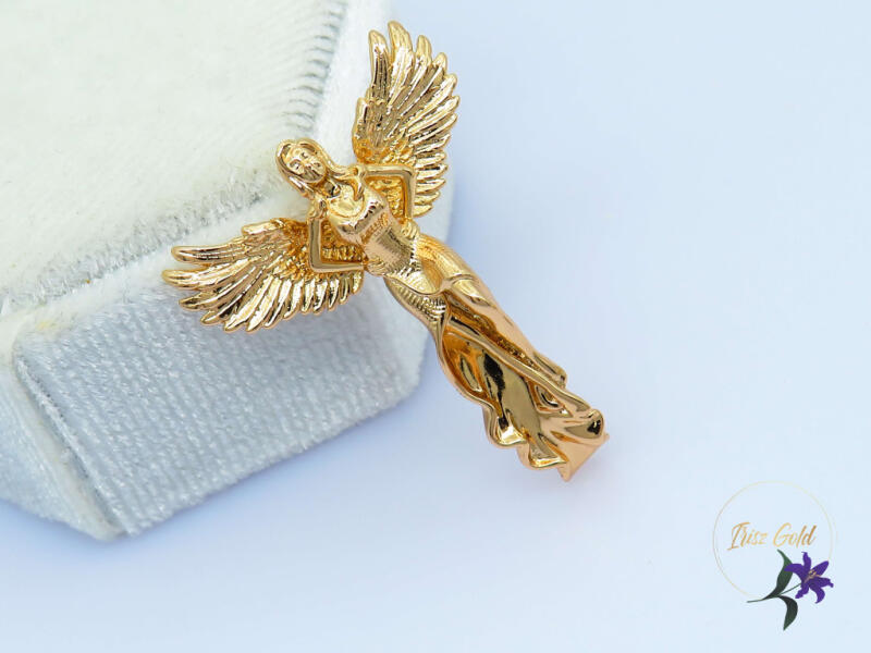 Gold Filled angyalt ábrázoló medál Szin: 18K Medál:30x24mm Csak vékony nyakláncot lehet hozzá tenni ! A forgalmazott divatékszerek alapanyaga nikkel és ólommentes ezért többnyire nem okoznak allergiás tüneteket, nyugodtan hordhatják fémérzékeny emberek is. Általában nem színezik a bőrt és más divatékszerekhez képest nagyságrendekkel jobb kopásállósággal rendelkeznek
