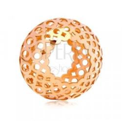 A 14K rózsaszín arany medál üreges, domború henger alakú, amelynek egész felületét nagyobb és kisebb ovális és kör alakú kivágások díszítik. A láncot a henger forma közepén kell áthúzni. Medál méretei: 8 x 12 mmMedál súlya: 0,5 gNyílás átmérője a láncnak: 5 mmFémjelzéssel ellátott. Medál lánc nélkül.