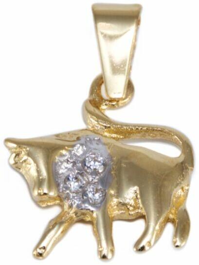 Modern stílusú, kedvelt fazonú, könnyű súlyú, de mutatós, üreges, cirkónia kővel ékített, horoszkópos arany medál.