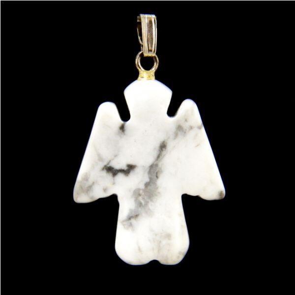 Howlit ásványból faragott angyal medál. Medál mérete: 22x27mm Az howlit gyógyhatása