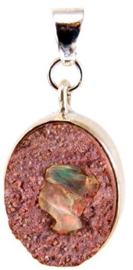 Természetes nemesopál rög anyakőzetben, ezüst medál foglalatban. Az opál gyógyhatása