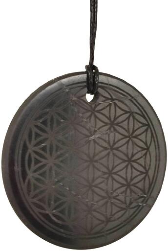 Shungit medál (életvirág gravírozott Oroszország Shungit) Egyedi ásvány ékszer.