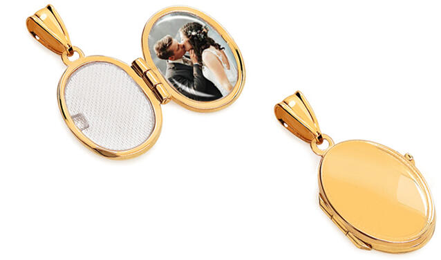 A medál felnyitható, belseje két fotó elhelyezésére alkalmas. A védőüveget óvatosan el kell távolítani, hogy a fényképet be lehessen helyezni. A fotó elhelyezése után a védőüveget vissza kell helyezni a medálba.