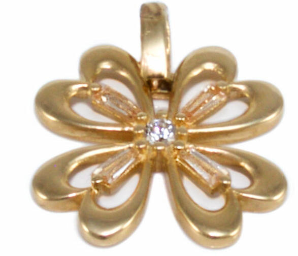 Mutatós, cirkónia kövekkel ékített, áttört virágot ábrázoló arany medál.