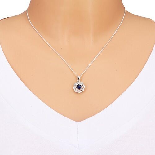Ródiummal ellátott 925 ezüst medál napocska alakban, mely közepét kerek csiszolt sötétkék cirkónia alkotja. A nap sugarait kettős átlátszó apró cirkóniás szegély alkotja. Medál része a láncra kerülő szem. Medál mérete: 13 x 13 mmLáncra kerülő szem: 3,5 mmSúly: 1,9 gFémjelzéssel ellátott. Az ár egy párra vonatkozik. A ródiummal kezelt felület az ékszer tartóss