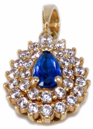 Modern stílusú, kedvelt fazonú, cirkónia kővel ékített, karmos foglalat, csepp alakú arany medál.