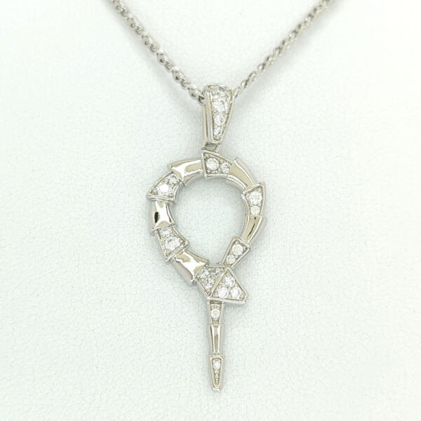 Ezüstszínű különleges kígyó medál, melyet fehér cirkónia kristályok tesznek csillogóvá. A kristályok karmos foglalatban helyezkednek el. Időtálló ékszer, víz hatására sem feketedik. . Antiallergén ékszer. Medál mérete: 40 mm x 16 mm. A nyakláncok különböző méretben kérhetők, mintájuk esetenként eltérhet a képen láthatótól, szélességük 2 mm vagy 3 mm. Az a