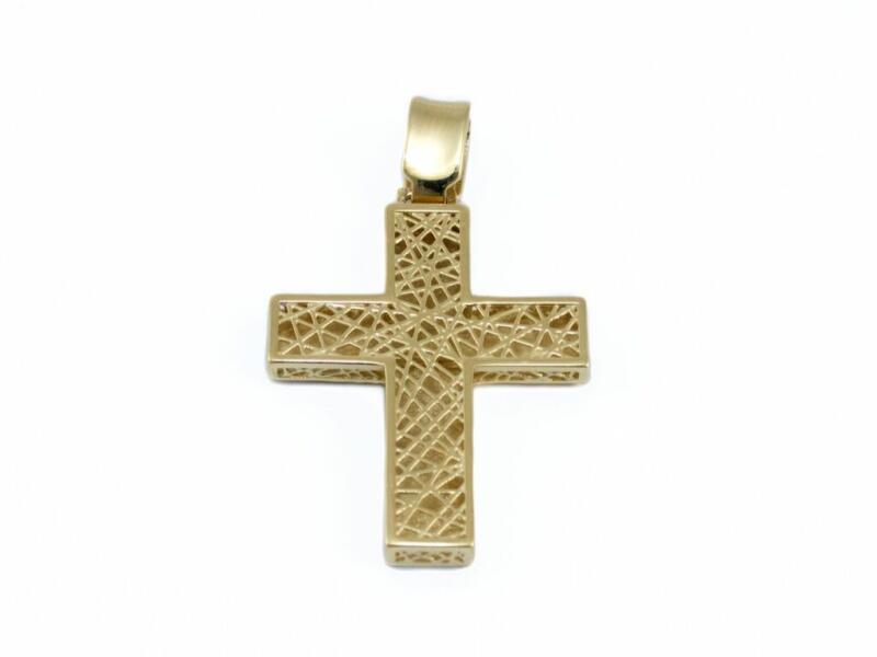 Modern stílusú, mutatós, ez az elején áttört, hátsó részén fedett arany kereszt medál. Igen mutatós darab.