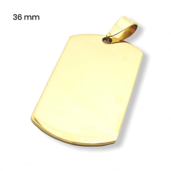 A rozsdamentes acél ékszereink allergiamentesek. Termék jellemzői: Rozsdamentes acél dögcédula, arany színű. Mindkét oldala gravírozható, körvonalasan. A gravírozás színe fém színű lesz. K artondobozba csomagolva szállítjuk. Gravírozási technika : Mechanikus (körvonalas) Méret:25x45mm Gravírozható felület mérete:25x41mm Anyaga : Rozsdamentes acél Tájékoztatjuk, hogy