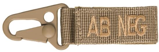 Karabiner vércsoport jelzéssel. Felakasztásra szolgál, életmentő információt nyújt. Szalag: 100% poliészter, Karabiner: cinkötvözet. Méretek: 11x3,7cm, Súly: 22g. Felhasználás: kulcsokra, pénztárcára, övre, stb. Előnyök: merev kivitelezés.