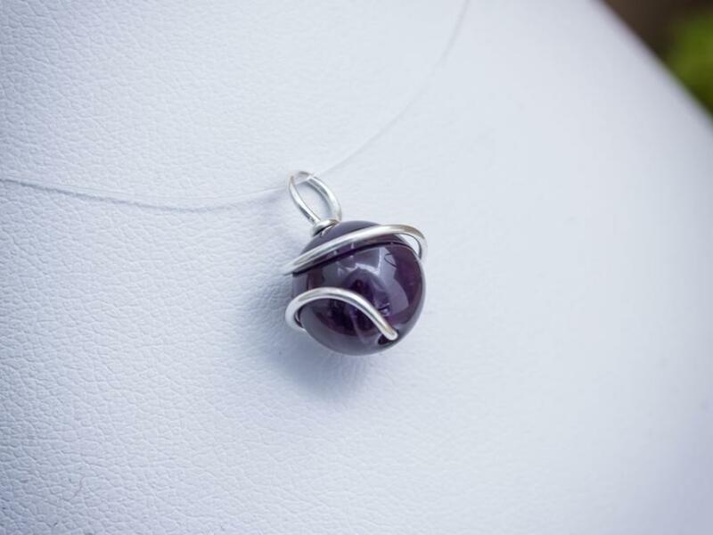 Szolidan elegáns ásvány medál azoknak a hölgyeknek, akik a visszafogott elegancia hívei a munkahelyükön, és a mindennapokban is. Alkalmi öltözékéhez is tökéletes. Örök klasszikus ajándék, melyet bátran adhatunk ajándékba olyanoknak, akikről tudjuk, kedvelik az ásványokat. A 1 0 mm-es valódi ametiszt ásvány gyöngyöt dekoratívan öleli körül az ezüst színű drót e