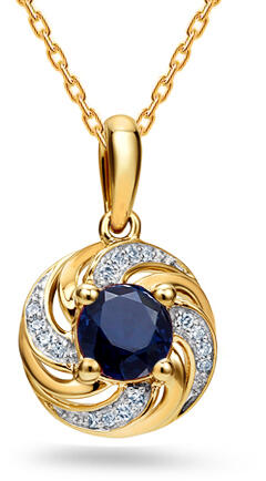 Ez a gyönyörű medál kiemelkedik ragyogó szépségével. 14 karátos sárga aranyból készült. A szíve egy 0,58 karátos természetes kék zafír, amely intenzív színével vonzza a tekintetet. A még több csillogás érdekében a medált 0,04 ct briliáns csiszolású gyémántok egészítik ki, amelyek csodálatos kontrasztot alkotnak a zafírral. A medált olyan nők számára tervezt
