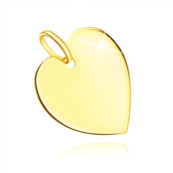 14K sárga arany medál szimmetrikus lapos szív formájában. A szív sima és tükörfényes felülettel rendelkezik. A láncra kerülő láncszem vékony, egyszerű ovális formájú. A medál mérete: 15 x 14 mmA láncra kerülő láncszem szélessége: 1,5 mm. A medál súlya: 0,60 gFémjel - Van. A lánc nem tartozék.