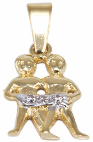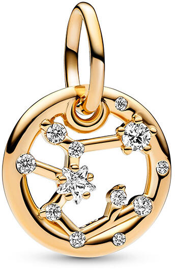 Modern stílusú, kedvelt fazonú, könnyű súlyú, de mutatós, üreges, cirkónia kővel ékített, horoszkópos arany medál.