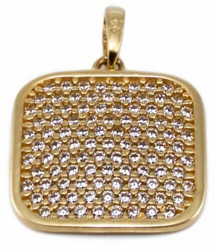 Modern stílusú, sok cirkónia kővel ékített, kocka formájú arany medál.