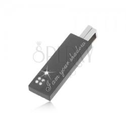 Medál sebészeti acélból, fekete téglalapból, amelyre egy kocka és kör van gravírozva, átlátszó cirkóniákkal. A medál hosszában egy "I am your shadow" - "Az árnyékod vagyok" felirat található. A medál hátsó oldalára egy lapos, matt téglalap van erősítve, amely vertikálisan mozgatható. Az alsó részben egy finoman vésett szimetrikus szív található. Mindkét téglala
