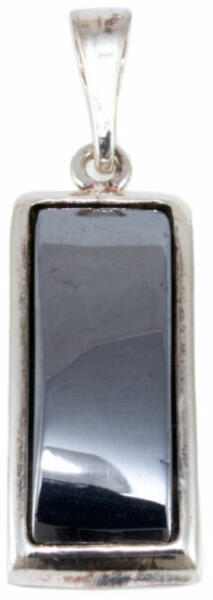 Klasszikus fazonú, szögletes kialakítású, hematit kővel ékített ezüst medál.