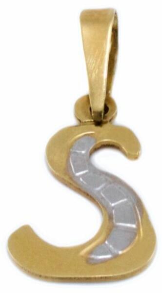 Klasszikus és kedvelt fazonú, ródiummal díszített, kétszínű arany "S" betű medál.