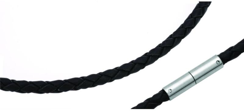 Rozsdamentes acél és bőr férfi nyaklánc. Fekete színű természetes bőr. Biztonsági bajonett zár. Többféle méretben. Cikkszám : K40BL Szín : Fekete Nyaklánc anyaga : Rozsdamentes acél és bőr Méretválaszték (hossza) : 45 , 50 cm Bőr vastagsága : 4mm Nikkelmentes : Igen Vízállóság : nem vízálló Garancia : A termékre egy év garancia érvényes!