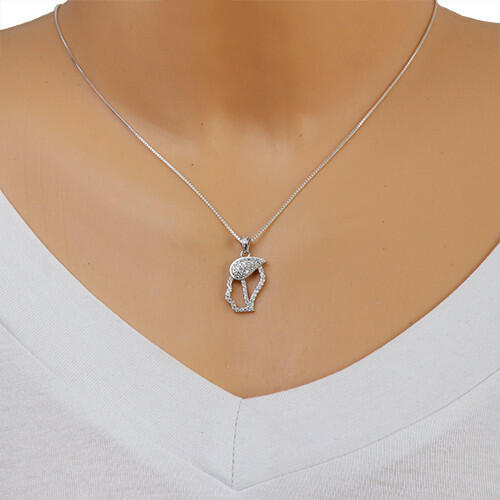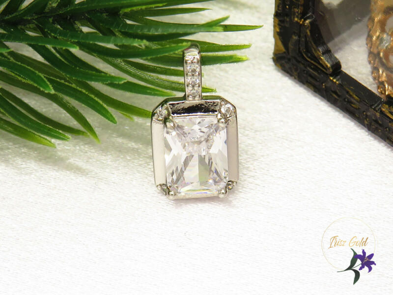 A 925 ezüst medál egy könnycseppből áll, amely apró átlátszó cirkóniákkal van kirakva és egy sima és fényes szegéllyel van díszítve. A könnycsepp alatt egy hullámos körvonal található, amely kerek átlátszó cirkóniákból áll. A láncra kerülő szemet átlátszó cirkóniák díszítik. A medál felülete ródiummal kezelt. A medál mérete: 14 x 20 mmA láncra kerülő