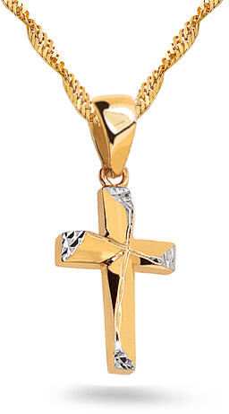 Kétszínű arany keresztes medál gravírozással, modell IZ26108