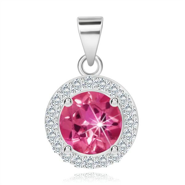 A 925 ezüst medált négy fog közé ágyazott, rózsaszín színű, vágott cirkónia díszíti. A cirkónia egy körvonal szegélyezi, amely kisebb átlátszó cirkóniákkal van kirakva. A medál sima láncszemmel rendelkezik a lánchoz, amely felfelé szélesedik. Medál átmérője: 10 mmA lánc szélessége: 2,5 mm (+/- 10 %)A medál súlya: 1,30 gFémjelzés - van. A lánc nem tartozék.