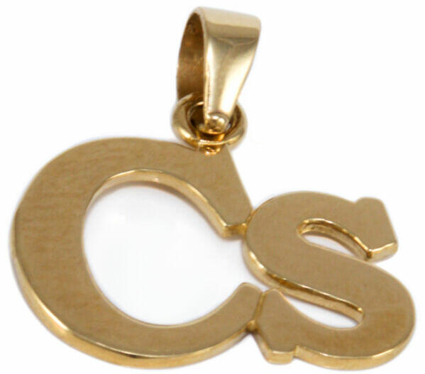 Egyszerű kialakítású, fényes, minta nélküli arany "Cs" betű medál.