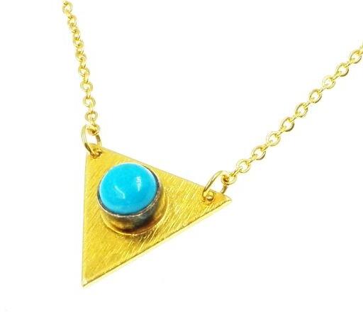Különleges stílusú nyaklánc, türkizzel. A türkiz kövecske, ezüst, vagy aranyozott ezüst fémbe van foglalva, a lánc jó minőségű nemesacél. Nem okoz allergiát, nem színeződik el és keményebb, nehezebben kopik mint az ezüst, vagy arany ékszer. Az ásvány mérete: 6mm-es cabochon A nyaklánc hossza: 48cm (kérésre más méretben is készítem). A készlet erejáig a szín vá