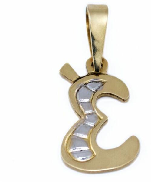 Klasszikus és kedvelt fazonú, ródiummal díszített, kétszínű arany "É" betű medál.