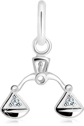 A 925 ezüst medál a Mérleg csillagjegyet ábrázolja. Az enyhén hullámos karok tartják a kerek, átlátszó cirkóniákkal díszített serpenyőket. A mérleg közepén egy kis kör alakú kivágás és a nyelv található. A medál hátulja lapos. A medál felülete fényes. A láncra kerülő szem ovális alakú. A medál mérete: 13 x 12 mmA láncra kerülő szem szélessége: 2,5 mmA med