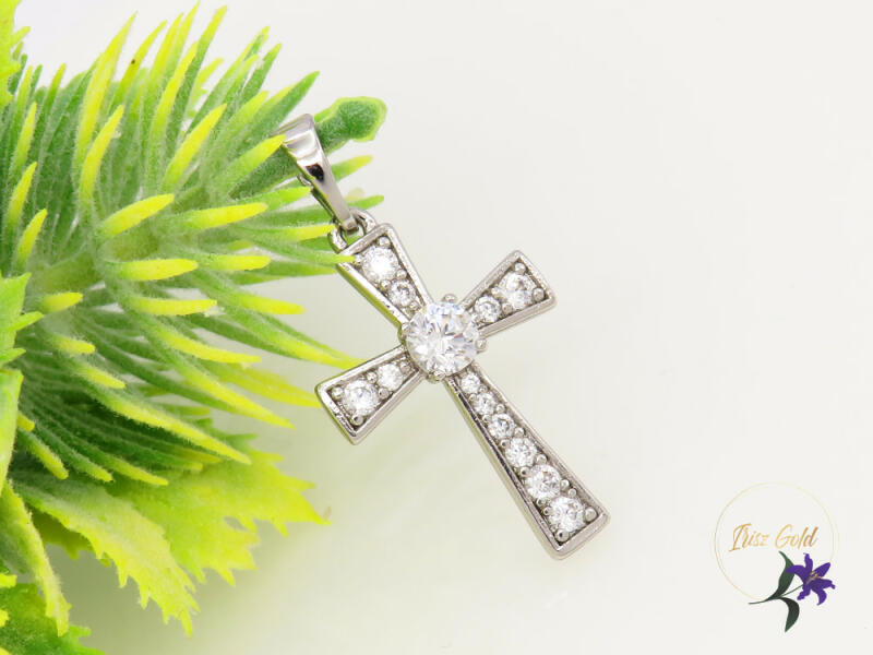 Antiallergén kereszt medál gazdagon díszített cirkóna kővel, középen egy nagyobb kő adja ki a szépségét Szin: rodium( ezüst) Méret:25x14mm A forgalmazott divatékszerek alapanyaga nikkel és ólommentes ezért többnyire nem okoznak allergiás tüneteket, nyugodtan hordhatják fémérzékeny emberek is. Általában nem színezik a bőrt és más divatékszerekhez képest nagyságrend