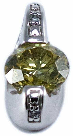 Modern stílusú, fehér és sárga színű gyémánt kövekkel ékesített fehérarany futó medál.