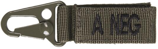 Karabiner vércsoport jelzéssel. Felakasztásra szolgál, életmentő információt nyújt. Szalag: 100% poliészter, Karabiner: cinkötvözet. Méretek: 11x3,7cm, Súly: 22g. Felhasználás: kulcsokra, pénztárcára, övre, stb. Előnyök: merev kivitelezés.