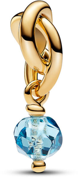 14 karátos arannyal bevonttal, egyedi fémötvözetből. 1 db aszimmetrikus csiszolású gyöngy, tengerkék színű, mesterséges kristály kőből.