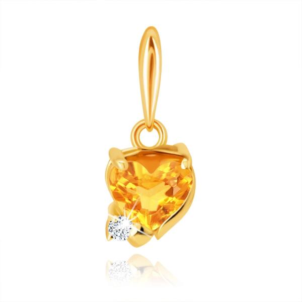 Medál 9K sárga aranyból citrinből szintén sárga árnyalatban, szív alakban, amely az alsó részben egy kerek átlátszó cirkóniával van kiegészítve. A láncra kerülő szem hosszúkás. A medál méretei: 6 x 6 mmA medál súlya: 0,35 gA láncra kerülő szem szélessége: 1,5 mmFémjelzéssel ellátott. Medál lánc nélkül.