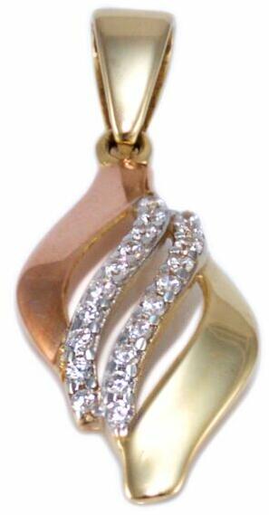 Modern stílusú, dupla kősorral és rosé aranyozással ékített, hullámos mintájú arany medál.