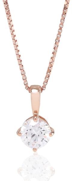 Prémium minőségű ezüst nyaklánc medállal. 18 karátos rozé arany bevonat. AAA kategóriás foglalt cirkónia kő. Különleges minőségű gyári díszcsomagolás. Ékszer anyaga : Sterling ezüst Finomság : 925 ezrelék Szín : rozé arany Lánchossz : 45cm Medál méret : 7mm x 7mm Kövek : AAA minőségű cirkónia (foglalva) Csomagolás : gyári díszdoboz Garancia : A termékre egy