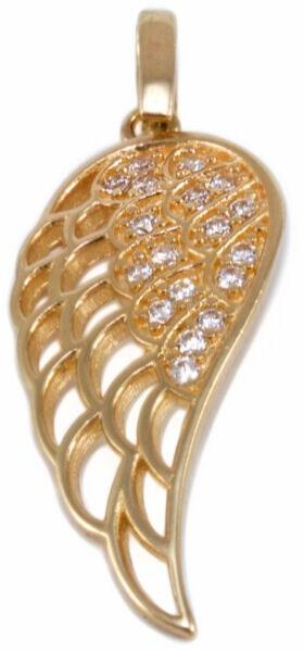 Modern stílusú, kedvelt fazonú, csillogó cirkónia kövekkel ékített, áttört angyalszárnyat ábrázoló arany medál.
