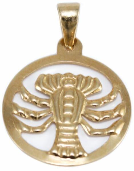 Klasszikus és kedvelt fazonú, rák horoszkópot ábrázoló, kör alakú, áttört kialakítású arany medál.