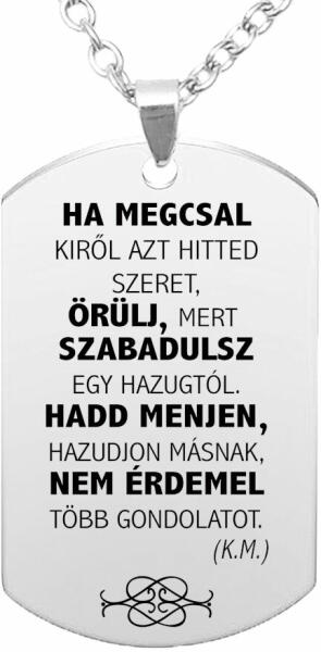 Ez az egyedi medál dizájn csak nálunk kapható. A legjobb gesztus és ajándékötlet! Választható rozsdamentes alumínium medál, vagy nemesacél tükörpolírozott kivitel is, arany vagy ezüst színekben. Az alapár az alumínium medálra vonatkozik lánccal vagy kulcstartóval együtt (válassz a listából, vagy rendeléskor írd be a MEGJEGYZÉSBE, hogy mire szereljük fel a medált, é